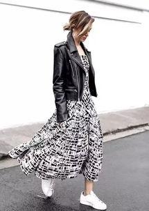 2. 混搭风格:皮衣搭配连衣裙,展现女性柔美的一面。